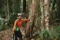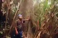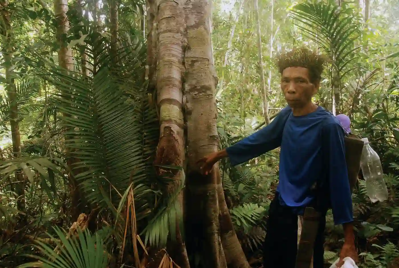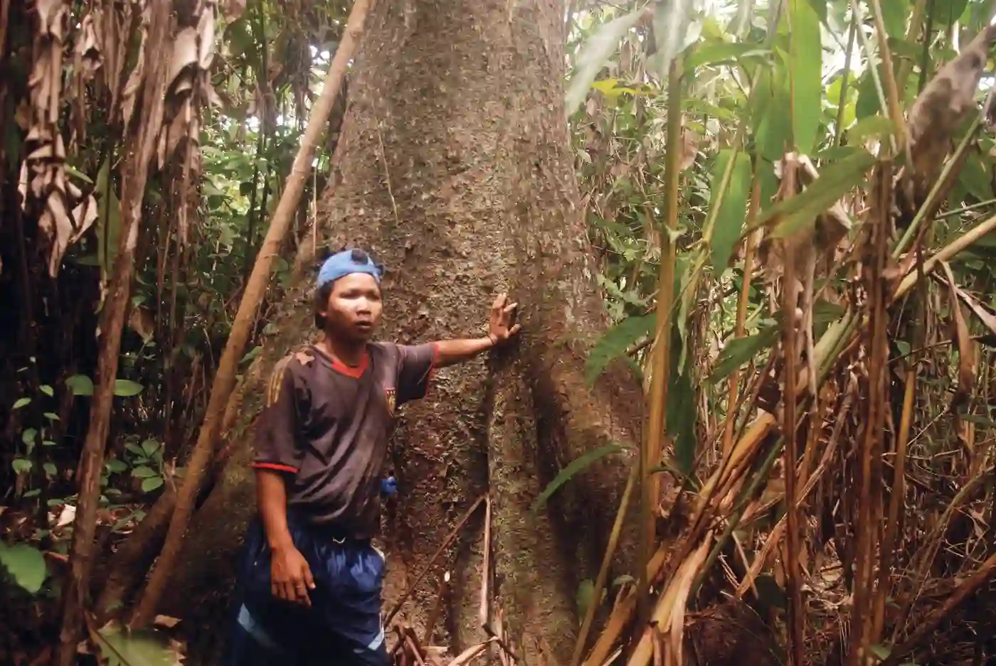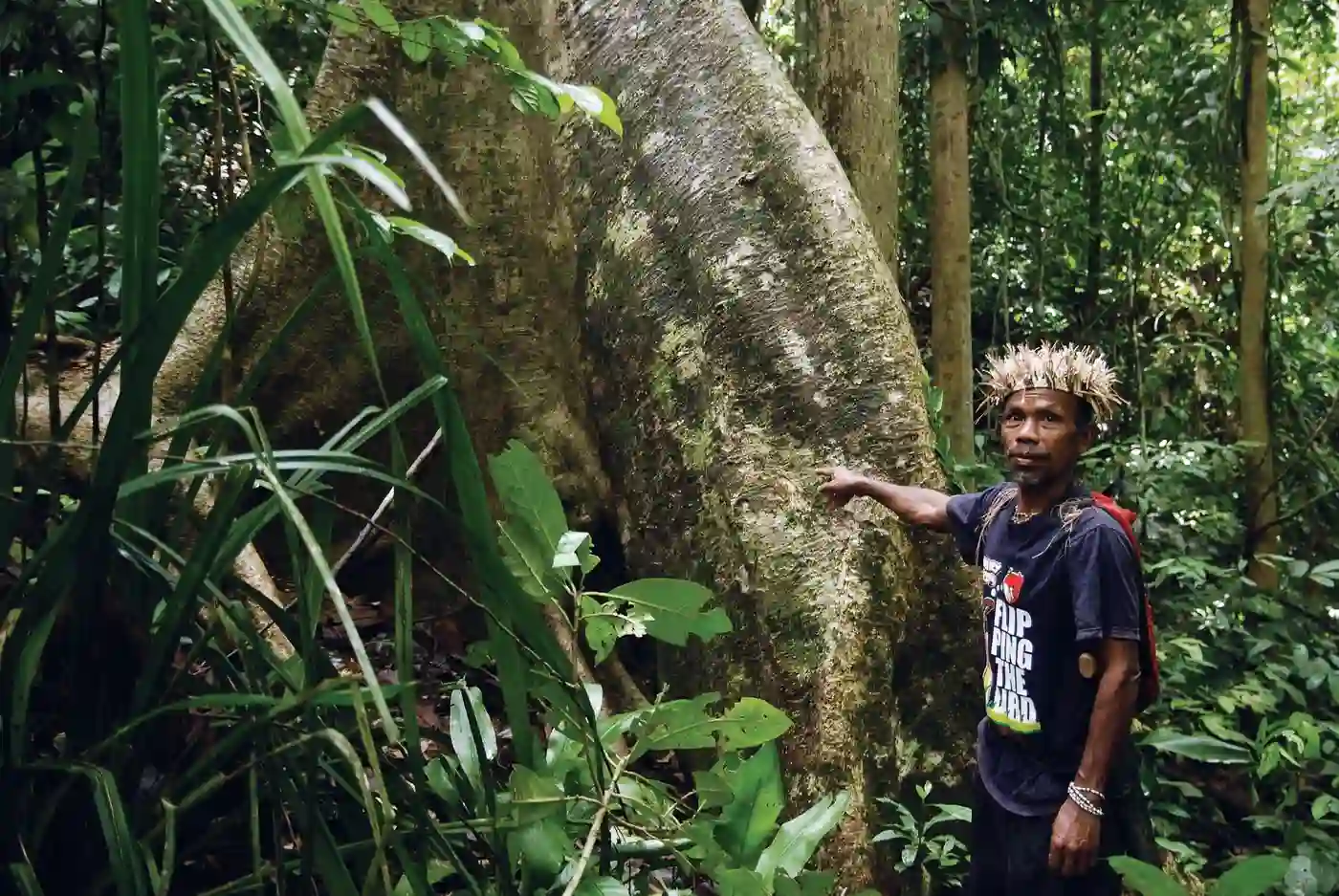 ˀAsơd Bơŋsuh, by an old badơơx tree (native rubber, jelutong), at Capɛɛr, which shows a gaping scar, testament to the tapping of its latex made over 50 years ago.