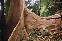 A dơơg tree, at the Kʹlɛɛr River, showing scars from years and years of tapping by Temiars of Gɔɔb, for making blow-dart poison.