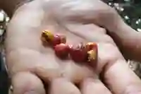 The fruits of the kʹbəəᵏ gɛrhaar tree.