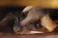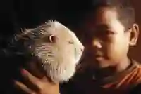 ˀƐsˀơơs, masked palm civet, here held as a pet.