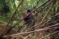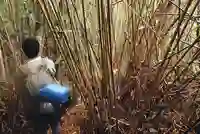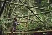 A Temiar looks for a suitable length of blowpipe bamboo to cut.