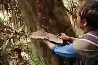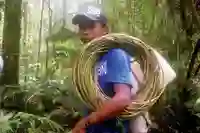 Manau rattan is prepared for collection by Temiars of the Upper Puyan kin group, in 2014.