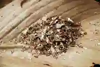 Scrapings of kʹmíɲam tree resin, for burning as sweet incense at burials.