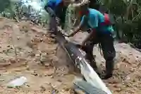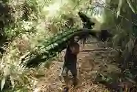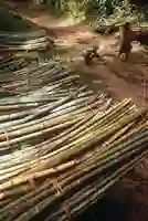 Suitable lengths of blowpipe bamboo are cut by Temiars to be crafted into the barrels of new blowguns.