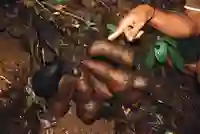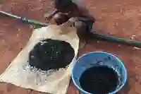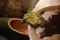 Cooked poison is filtered through a sponge of bamboo shavings.